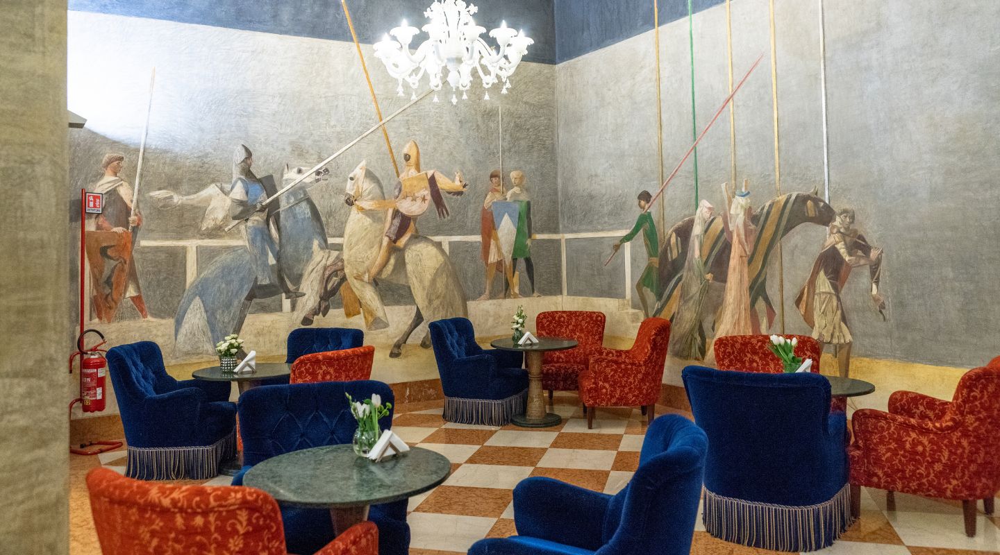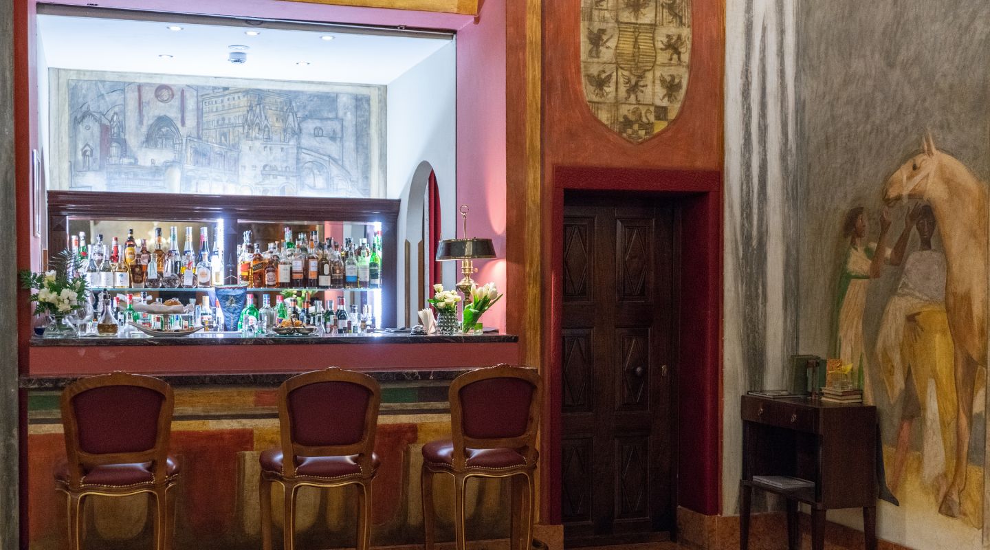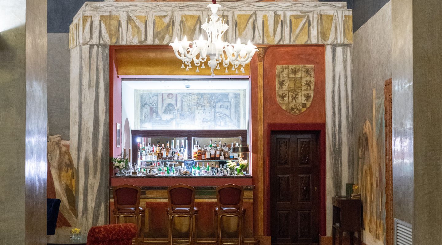 The Due Torri Bar is one of the hotel’s most elegant and welcoming spaces, a place where the charm of the historic residence meets the pleasure of conviviality. Located in the spacious and scenic Lounge, the bar greets guests in a refined and relaxing setting, enhanced by the frescoes that adorn the walls—artistic elements that help create an evocative atmosphere rich in history.