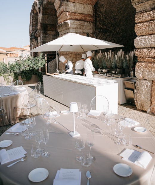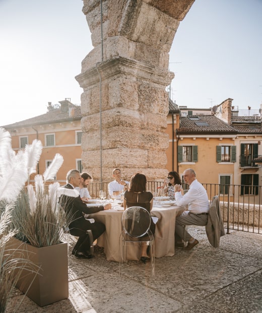 There is a place no one knows, which has withstood the test of thousands of years, and connects the wing of the Arena to its first ring. It is an exclusive terrace overlooking Piazza Bra, where you can enjoy an experience that is unrepeatable elsewhere.